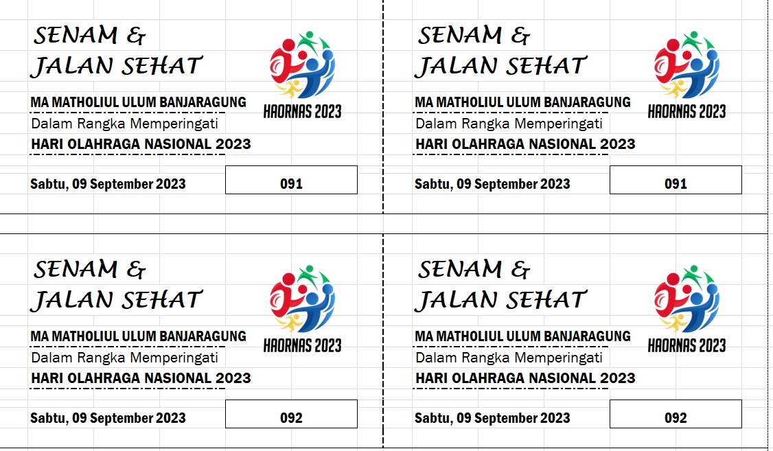 Flayer sosialisasi Mamuba (atas) dan logo Haornas 2023 dalam Kupon jalan sehat (dok.ist).