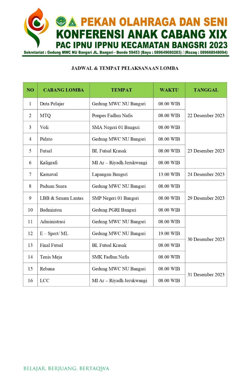 Porseni IPNU-IPPNU Bangsri Digelar, Inilah Jadwal Lombanya
