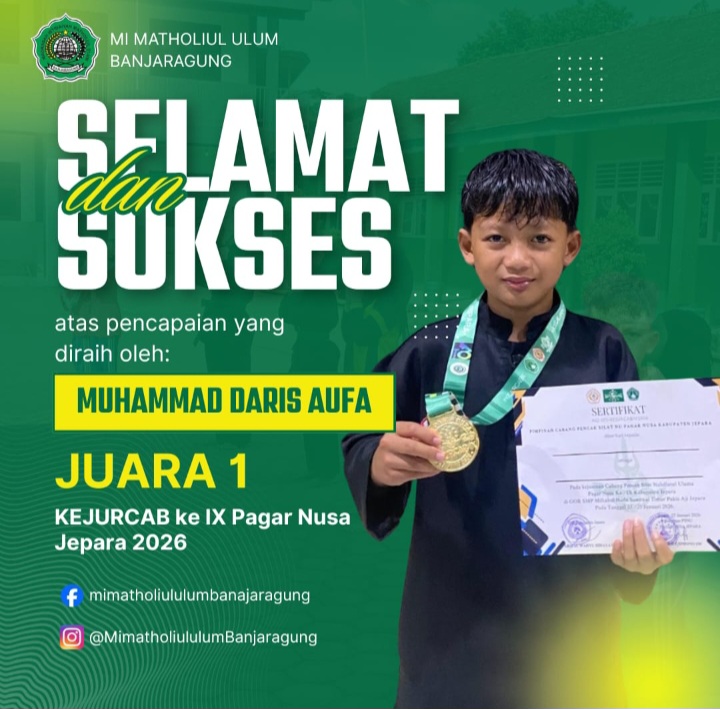 Muhammad Daris Aufa: Siswa kelas 4 MI Matholiul Ulum Banjaragung ini tampil gemilang dan berhasil menyabet Juara 1 Tingkat Usia Dini Kelas E Putra.