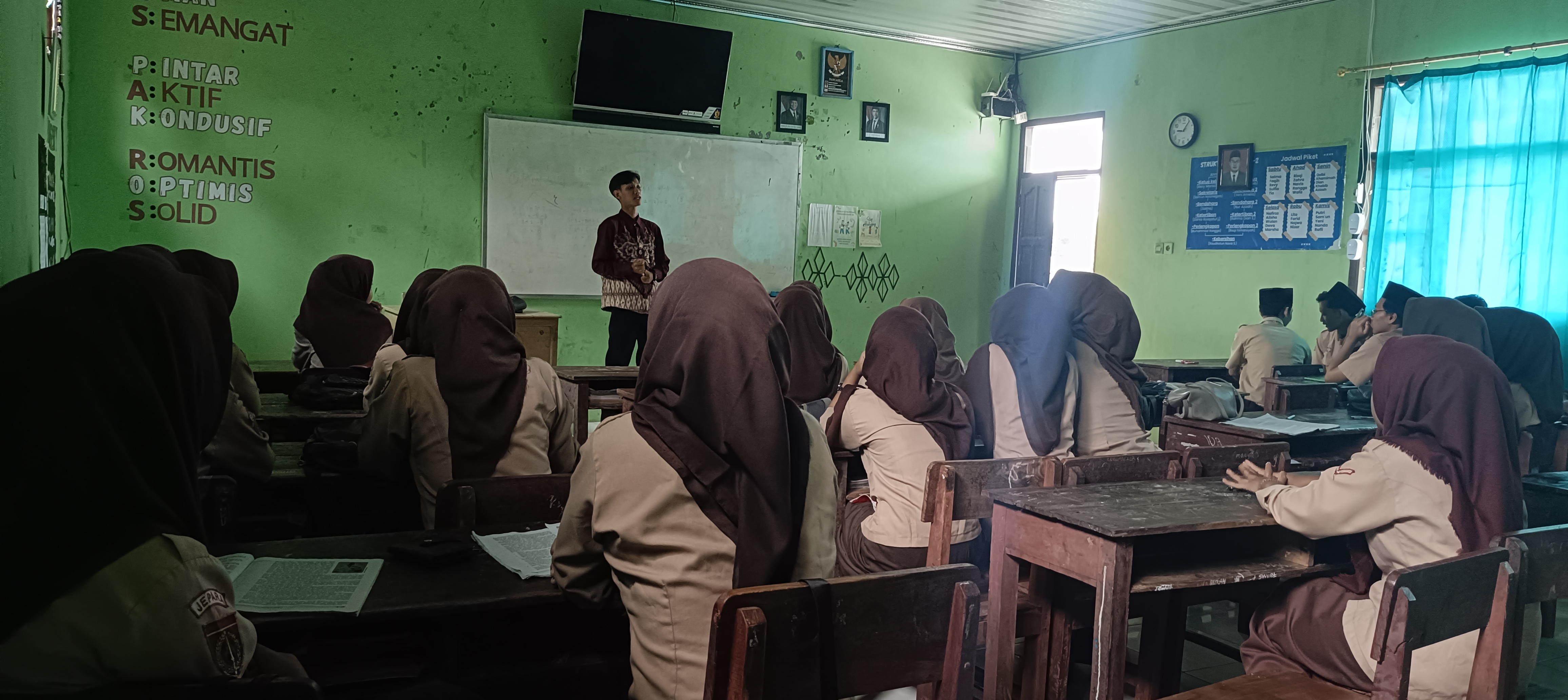 (Pemateri dari Internasional Edupreneurship memberikan sosialisasi di kelas XII.2 MA Matholiul Ulum Banjaragung)